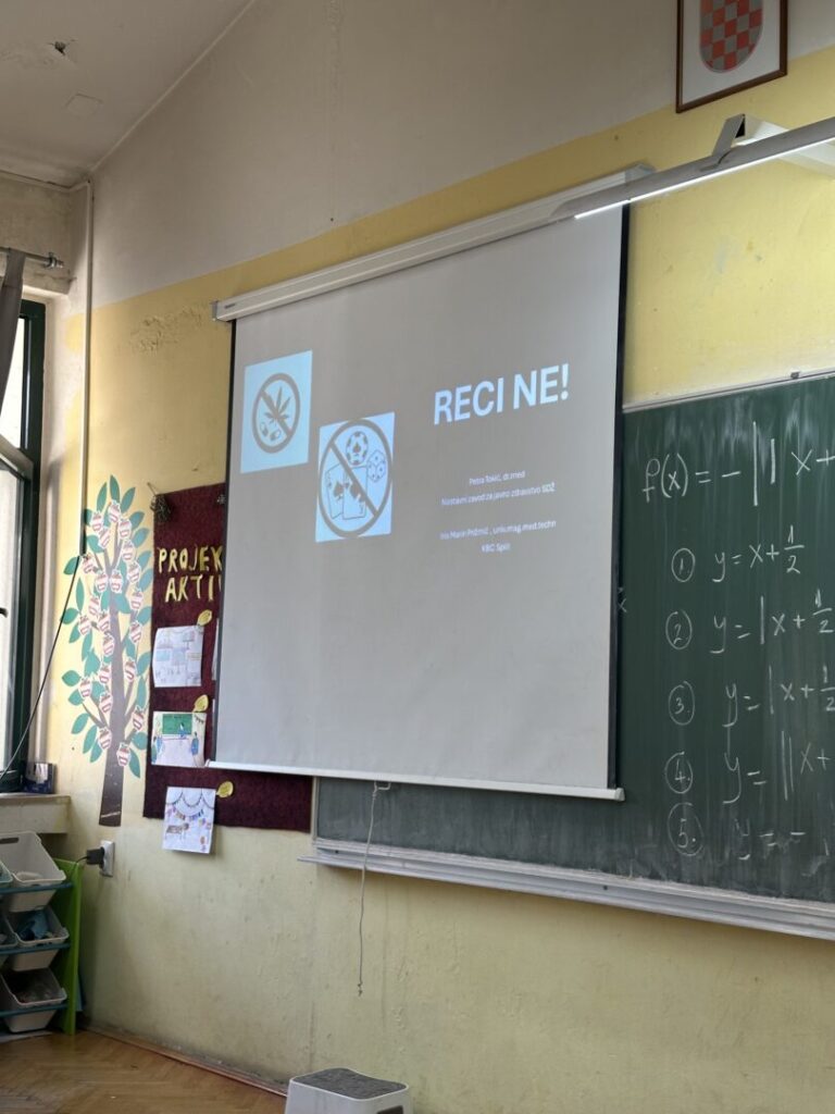 U utorak 15. travnja naši gostujući predavači s odjela za psihijatriju KBC Split održali su učenicima 1. i 3. razreda zanimljiva i edukativna predavanja na temu “Ovisnosti modernog doba”.
