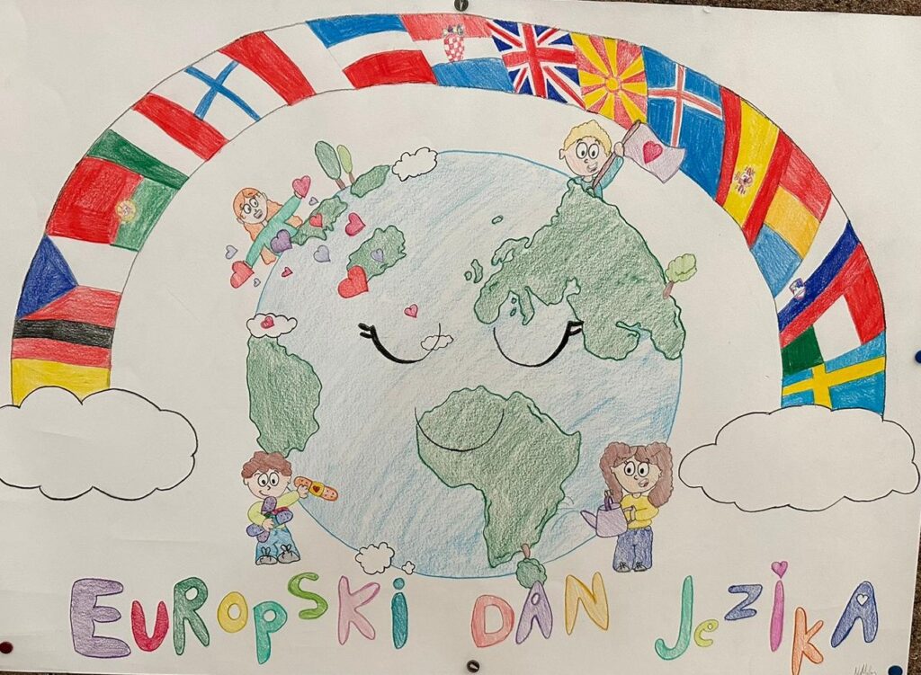 Povodom obilježavanja 25. obljetnice Europskog dana jezika, učenice 4. E razreda: Nikolina Štrbac, Ela Alilović, Marijeta Vekić i Nikolina Milas, uključile su se u međunarodni natječaj “Create a poster illustrating the 25th anniversary motto of the European Day of Languages- Languages open hearts and minds”.