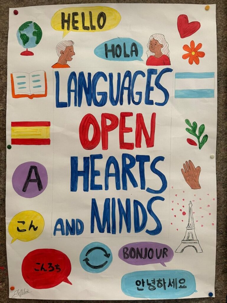 Učenice su izradile kreativne postere koristeći različite tehnike – od crteža do digitalne obrade – nastojeći što slikovitije prikazati poruku natječaja koja ističe da jezici otvaraju srca i umove.